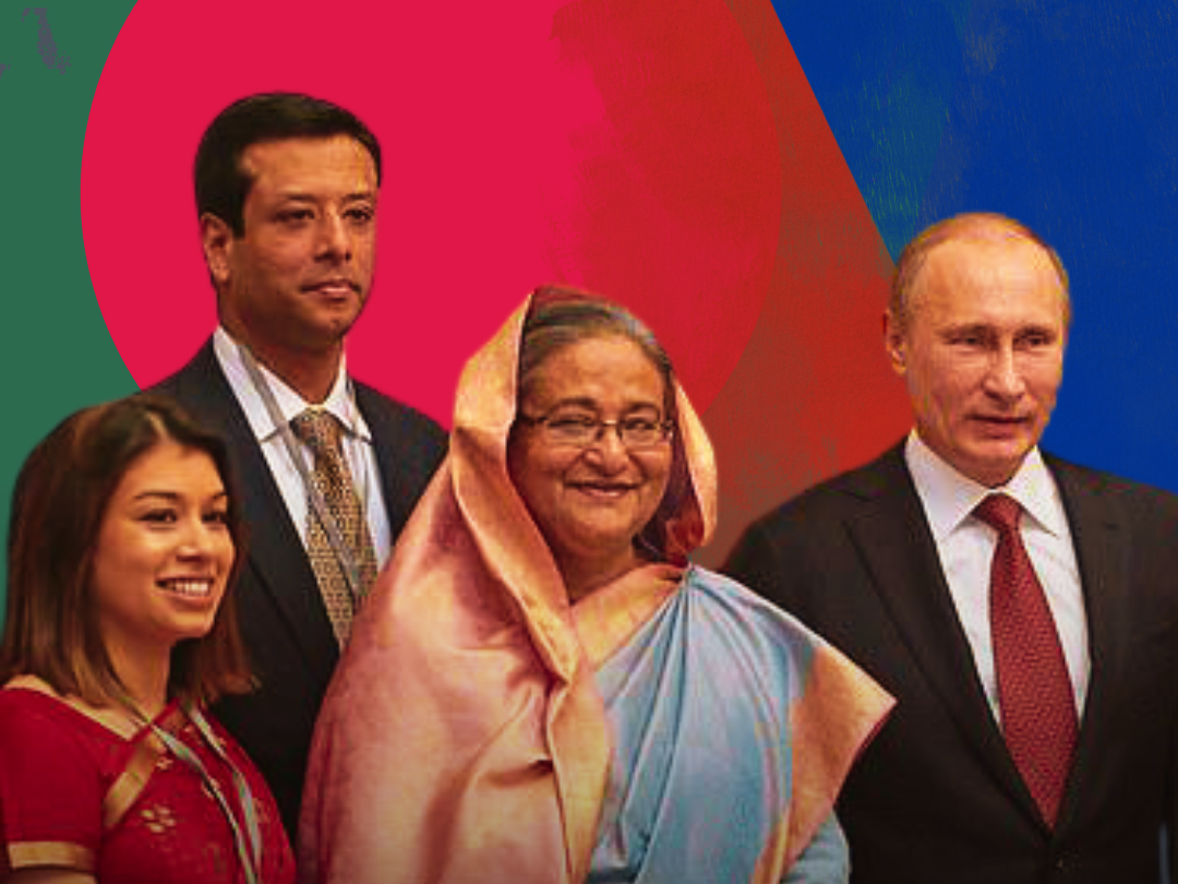- 15 JanThe meeting at the Kremlin in Moscow takes place. In attendance are Sheikh Hasina, Sajeeb Wazed Joy, Sheikh Rehana Siddiq, Tulip Siddiq and Vladimir Putin. They brokered a deal for Russia’s financing of the $12.65 billion Rooppur Nuclear Power Plant, and a $1 billion arms deal. The construction project would be bankrolled by Moscow with a 90% loan. These loan repayments were guaranteed by Gazprom’s access to gas fields. As part of the deal, Russia initially committed $500 million to fund the launch of construction for Bangladesh’s first nuclear power plant, located in Rooppur in the country’s far west.